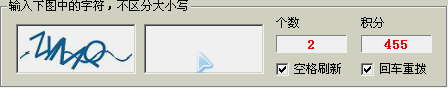 个数为已经正确的码数,积分为已经上传的码数 (注意:请勿自己注册打码工号,那没有人给你钱的,你一定要用你领取该项目的工号,写错了就是帮别人赚钱了。) 注在关闭软件的时候请等待软件自动关闭否则可能出现丢码的情况 当积分清0后本站整理完数据后会统一进行支付,届时大家可在本站的帐户内查询到,便可申请支付。 如果在打的过程中上分不好,建议勾上“空格刷新”和“回车重拨”,多按按空格跳过几个不打或回车换IP。 发布日期:2013/12/28 17:13:03 |